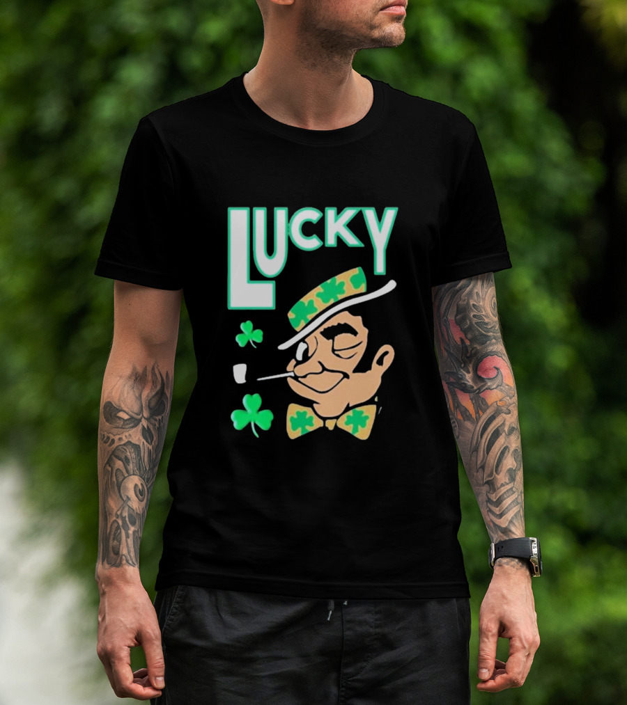 Boston Celtics Lucky The Leprechaun Shamrock Winking Pipe T-Shirt