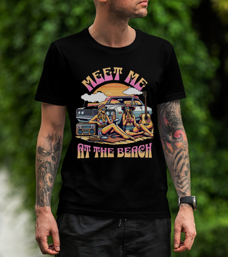 Meet Me At The Beach Sunset Paradise With Classic Car And Guitar T-Shirt