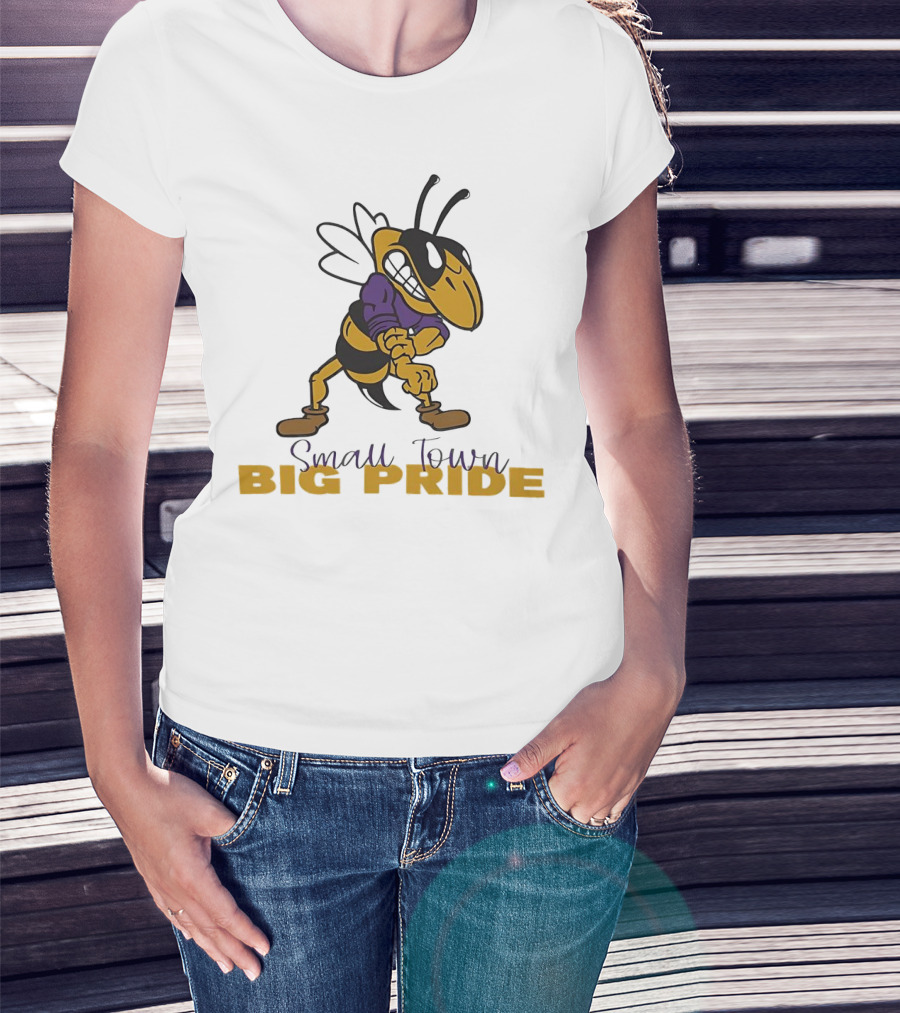 The Small Town Big Pride Bee Mascot T-shirt is designed for everyday wear and a consistent fit. Fabric is pre-shrunk ring-spun cotton with durable stitching. See the size chart below for exact measurements.