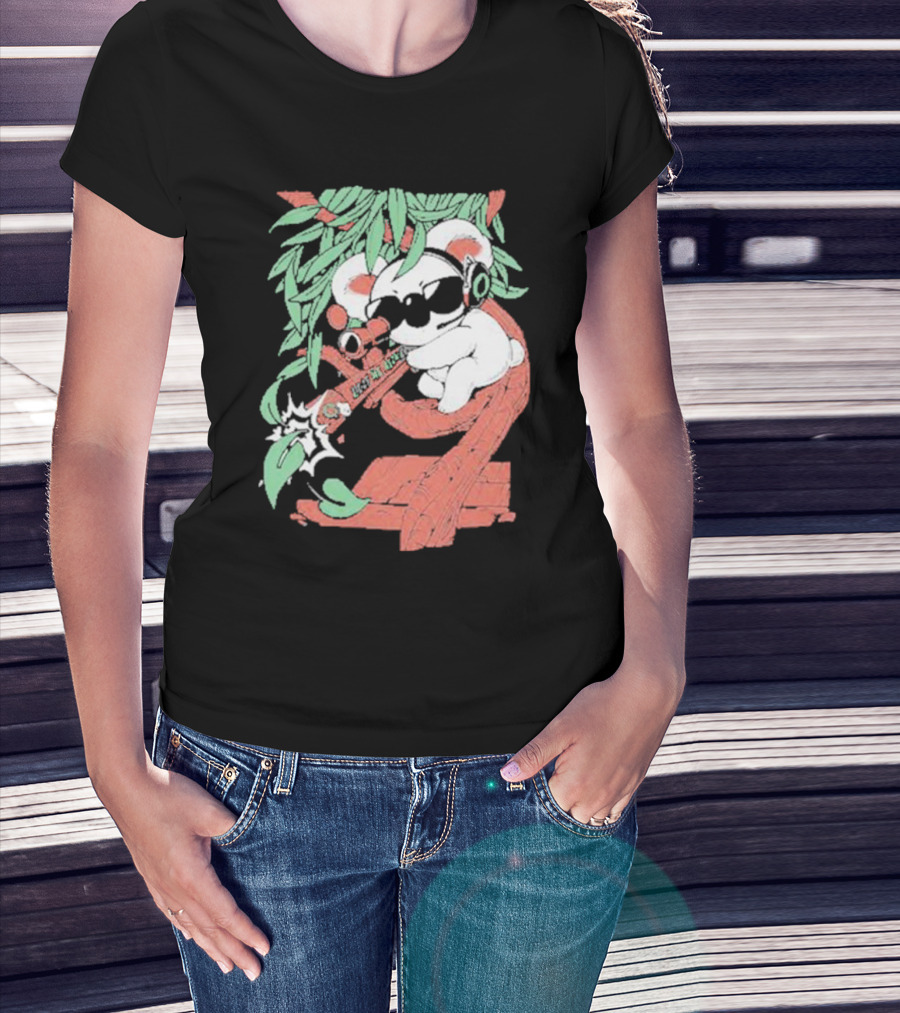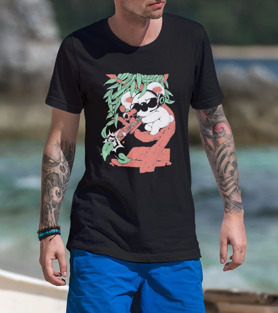 Flyquest Leaf Me Alone Koala Sniper On Tree Branch With Sunglasses And Headphones T-Shirt