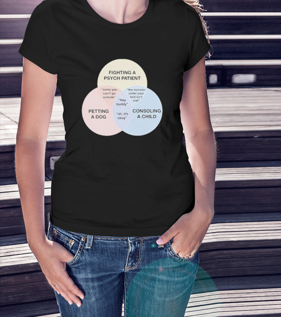 Fighting A Psych Patient Petting A Dog Consoling A Child Sorry You Can't Go Outside Hey Buddy Sh It's Okay The Monster Under Your Bed Isn't Real T-Shirt