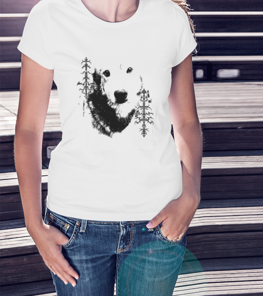Wolf Face With Stylized Evergreen Trees T-Shirt