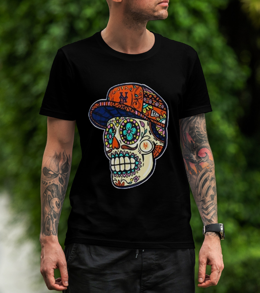 New York Mets New Era Black Sugar Skull Cap T-Shirt