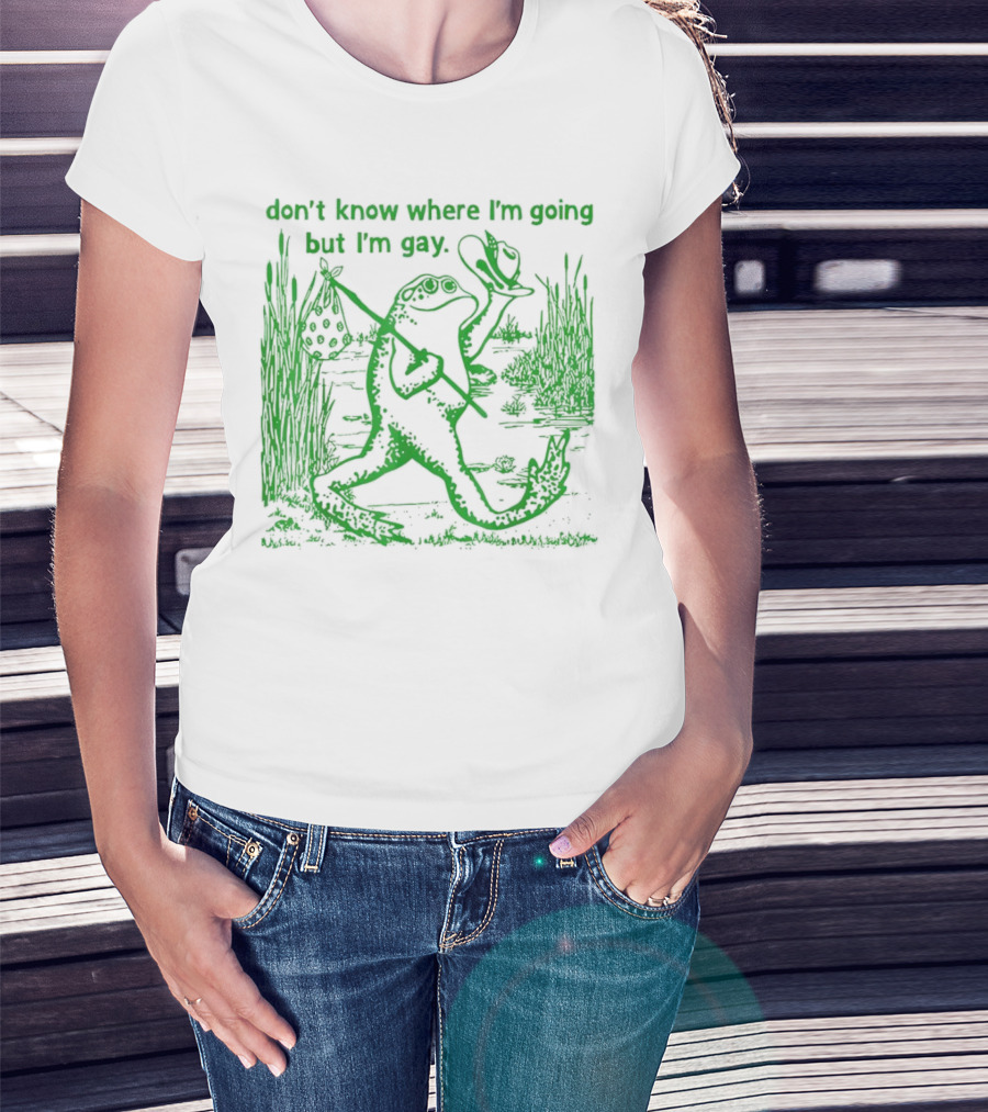 Don't Know Where I'm Going But I'm Gay Frog Carrying Bag And Hat In Nature Scene T-Shirt