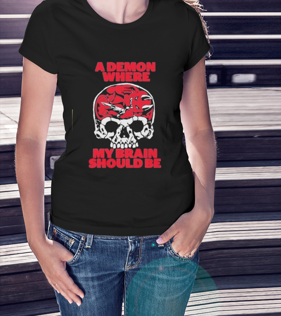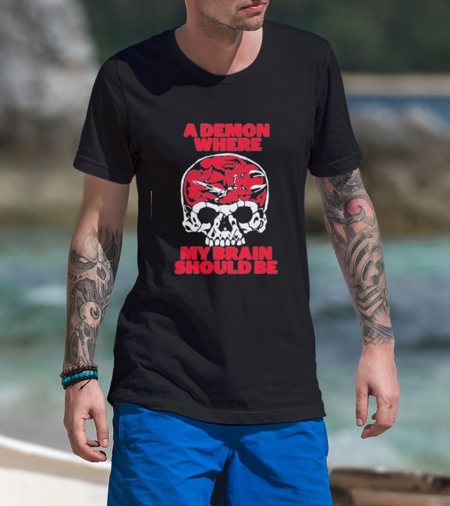 A Demon Where My Brain Should Be Skull With Red Demon Inside T-Shirt