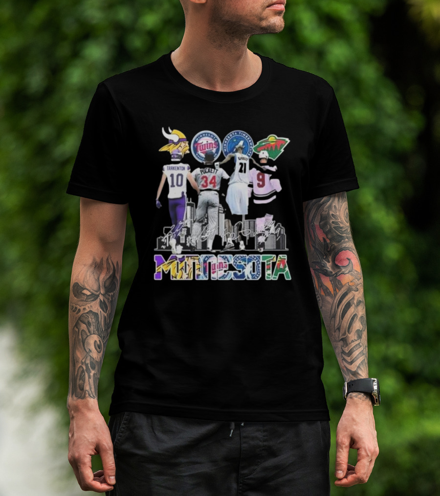 Minnesota Vikings Twins Timberwolves Wild Iconic Players Signatures Fan T-Shirt