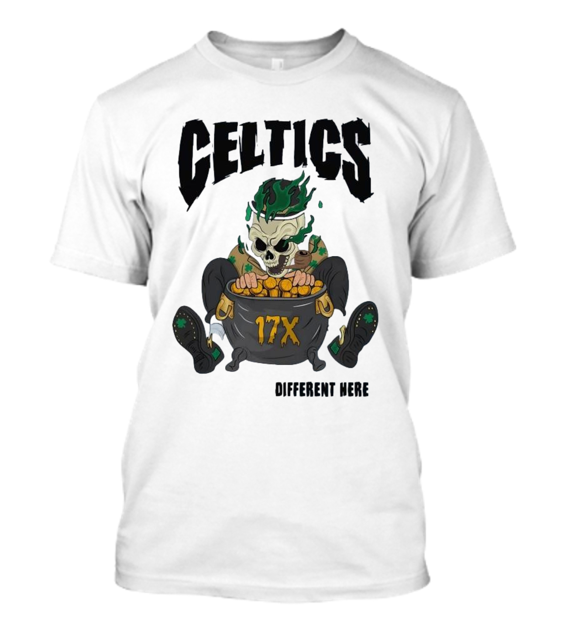Celtics 17X Gold Skeleton不同 Here T-Shirt