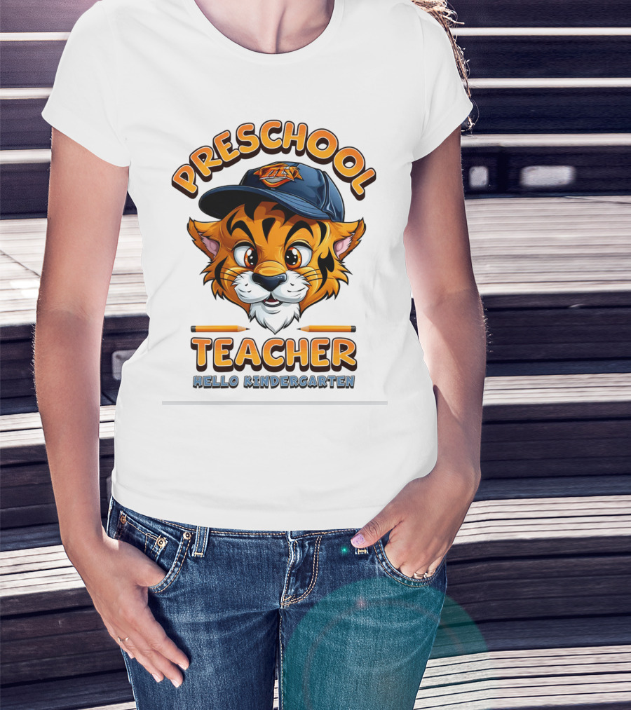 Preschool Teacher Tiger Mascot Hello Kindergarten Back To School T-Shirt