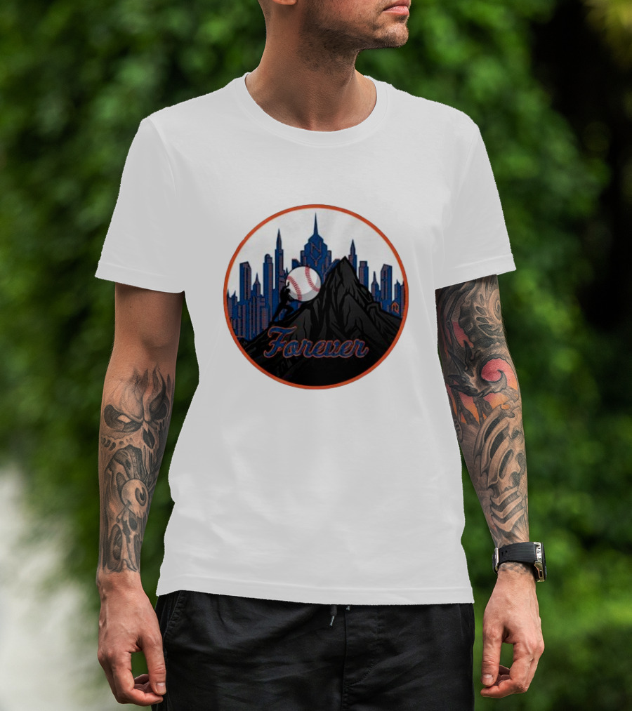 One Must Imagine A Met Fan Happy Forever Baseball Skyline Iconic City Background T-Shirt