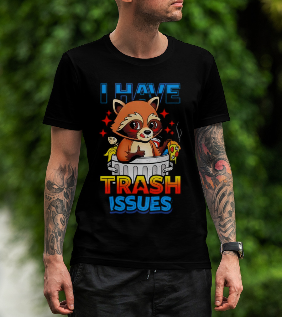 Raccoon I Have Trash Issues Pizza Fish Cartoon T-Shirt