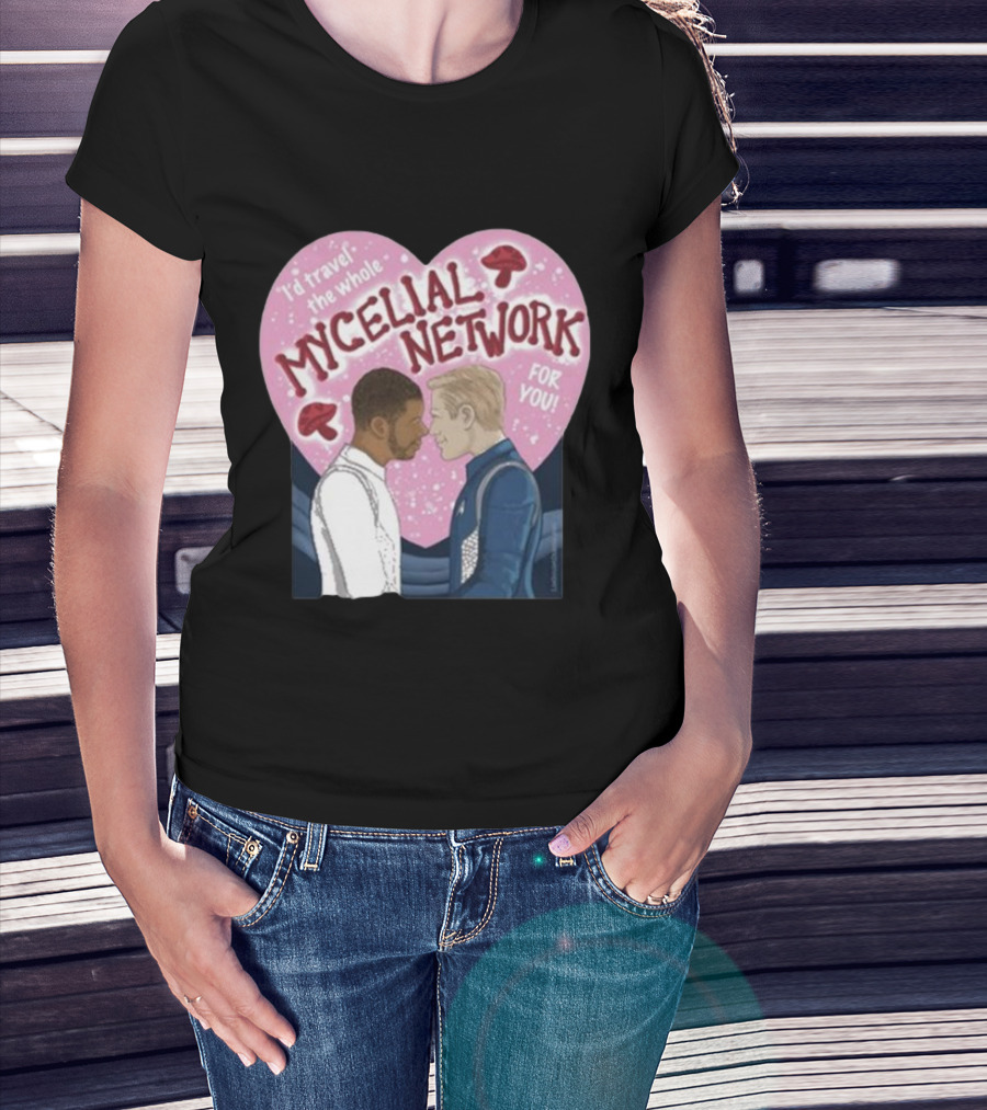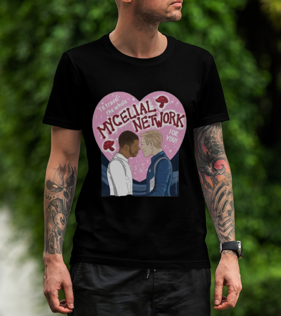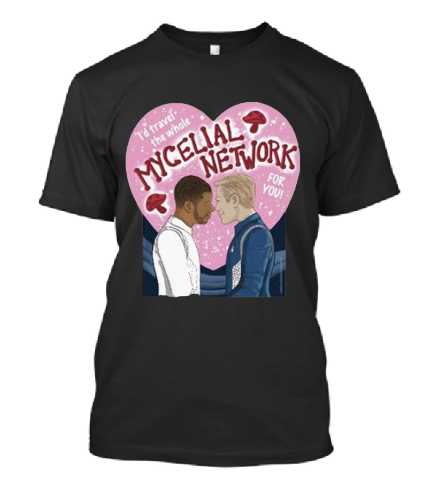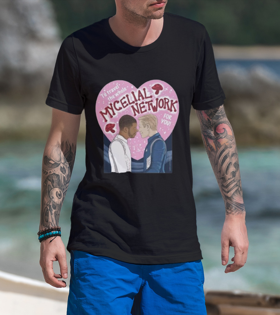Iz Goulet Dubois I’d Travel The Whole Mycelial Network For You Romance Heart Mushrooms T-Shirt