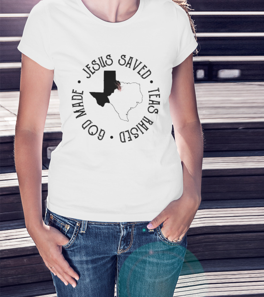 Jesus Saved Texas Raised God Made Texas Map T-Shirt