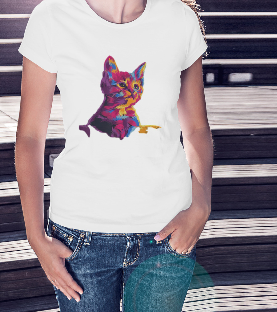 Kitten Colorful Art For Cat Lovers T-Shirt