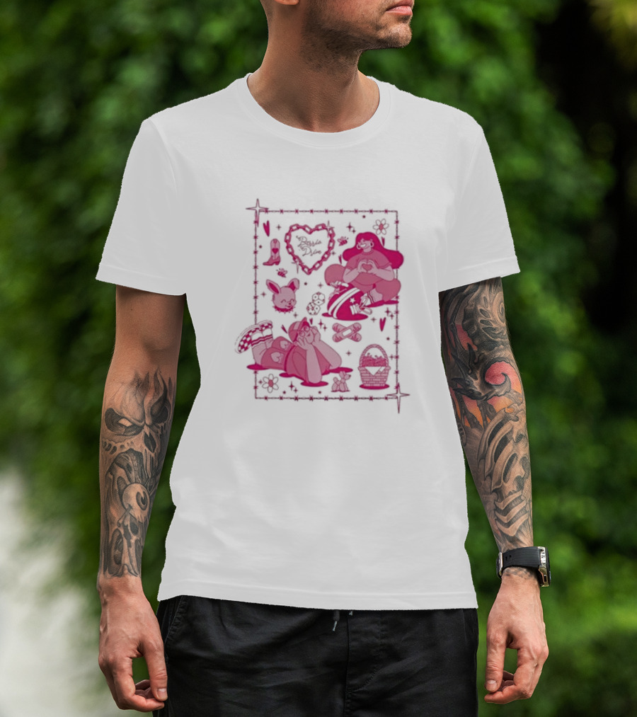 Barrio Drive Picnic Neon Heart Love Basket Motif T-Shirt
