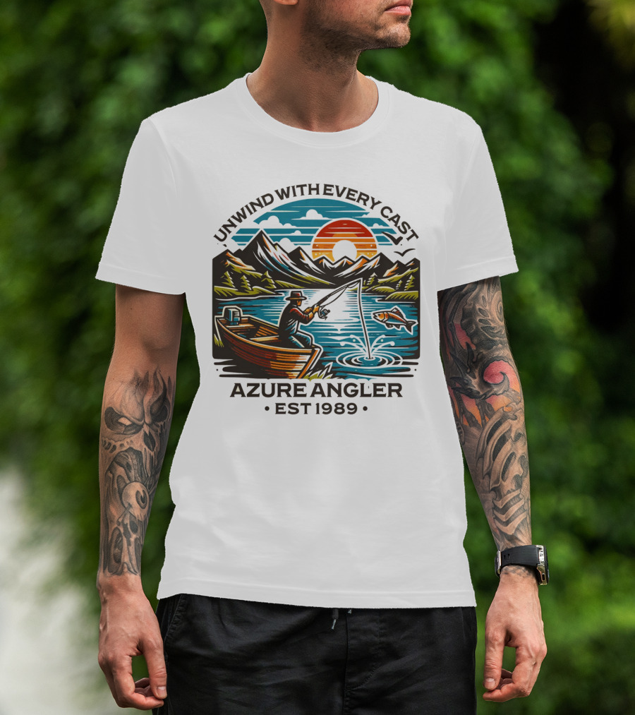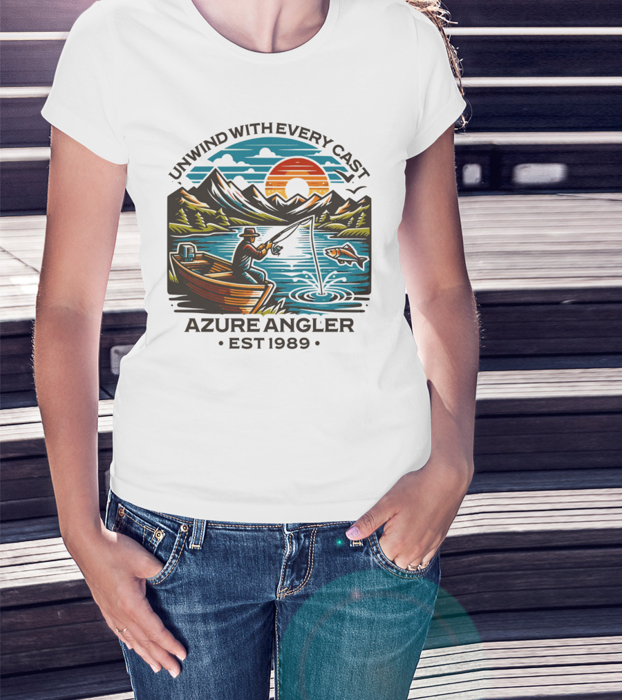 Unwind With Every Cast Azure Angler Est 1989 T-Shirt