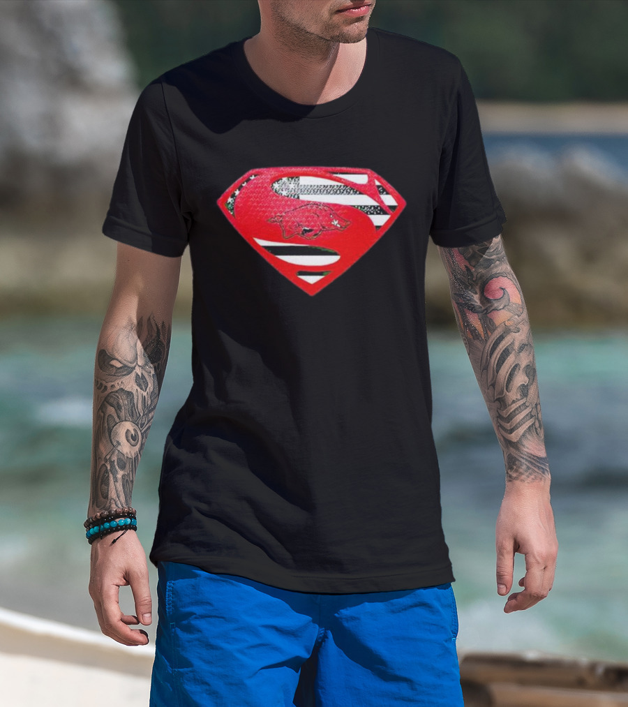 Arkansas Razorbacks Superman Logo With USA Flag Colors T-Shirt