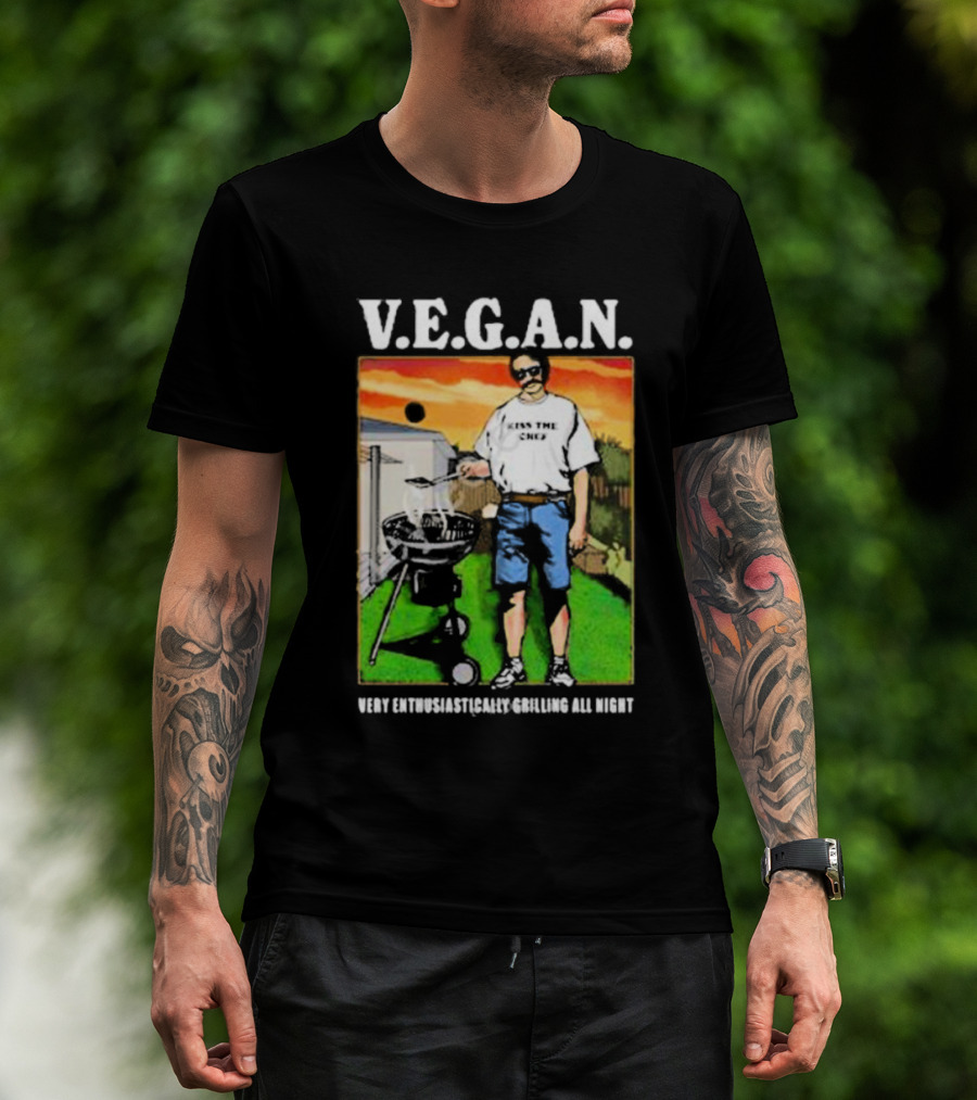 V.E.G.A.N Very Enthusiastically Grilling All Night Kiss The Chef T-Shirt