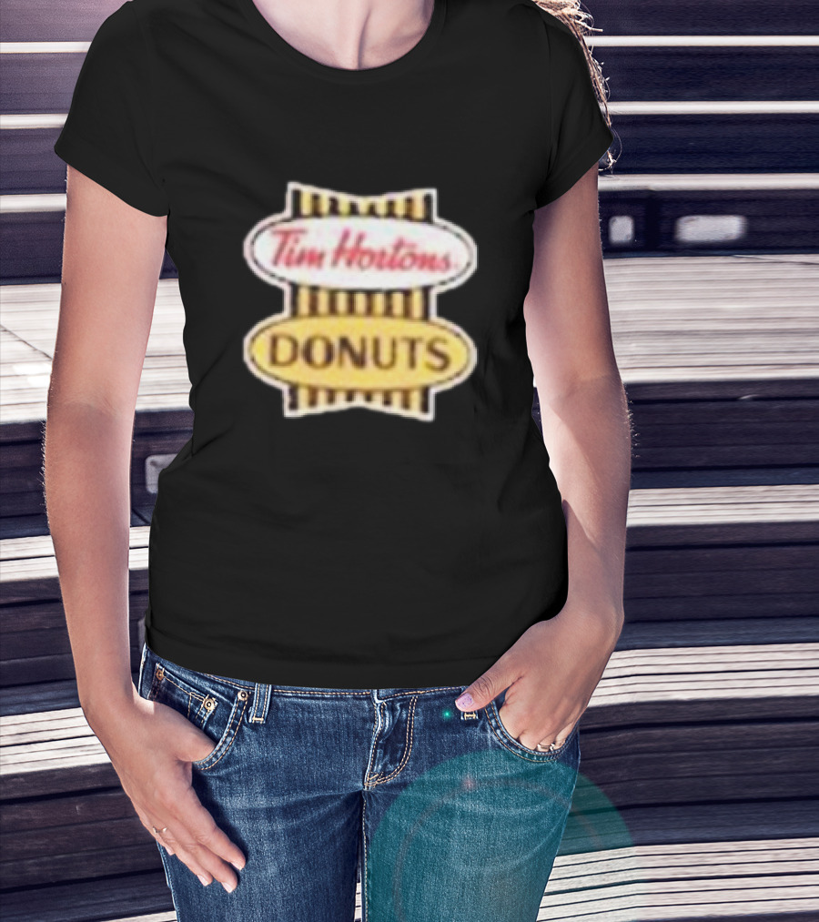 Tim Hortons Donuts Retro Logo Black And Yellow Stripes T-Shirt