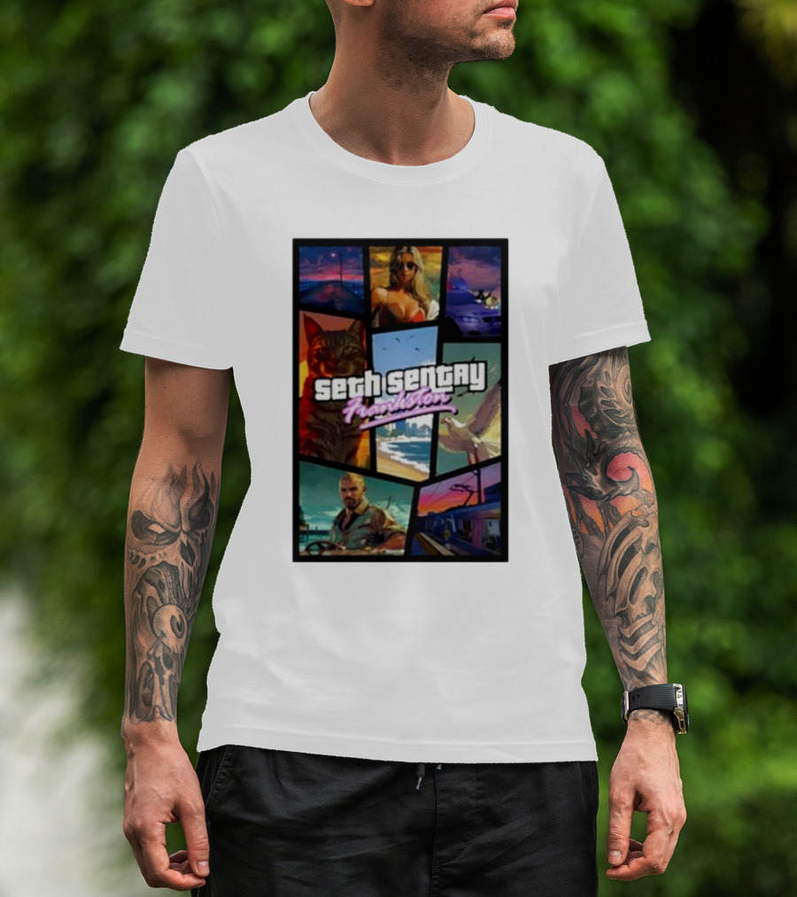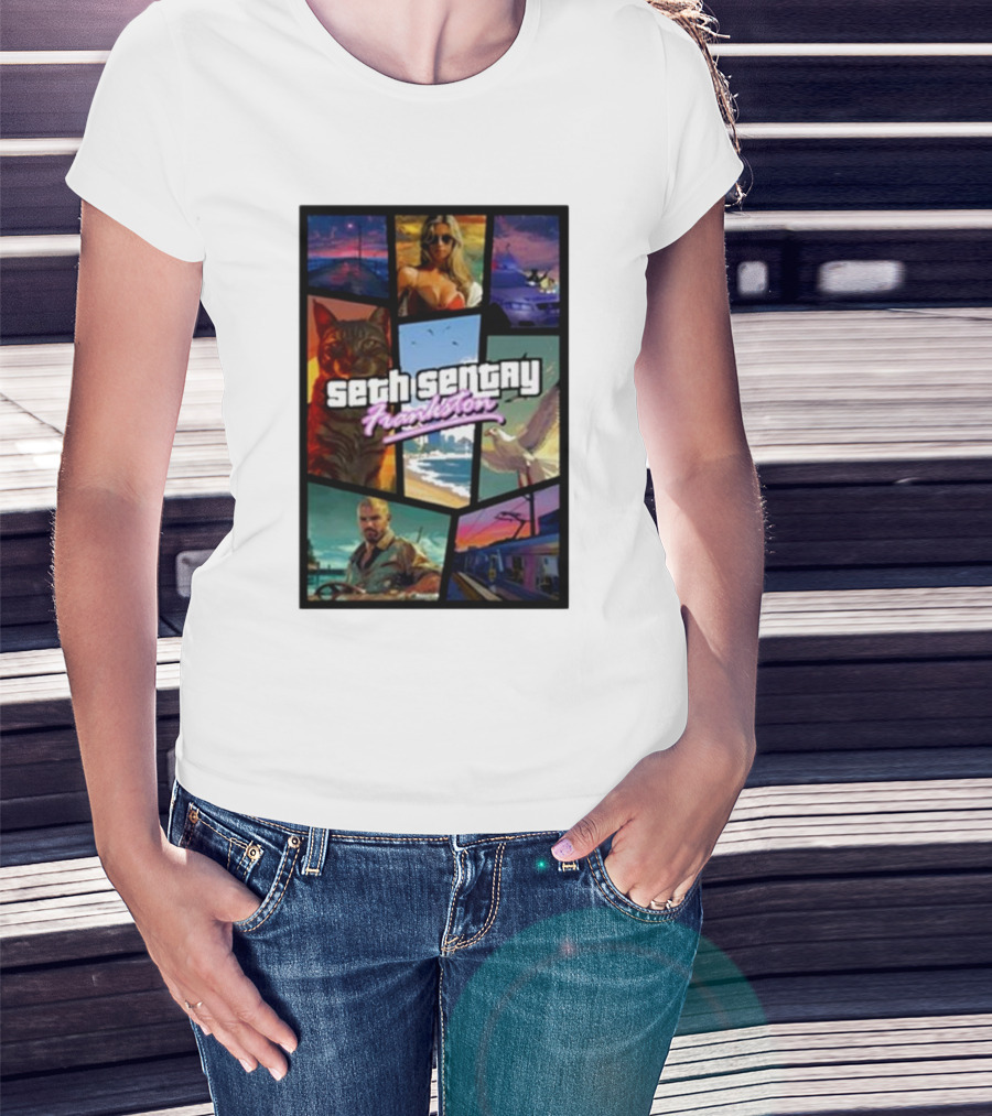 Seth Sentry Frankston GTA Style Art With Cat And City Scenes T-Shirt