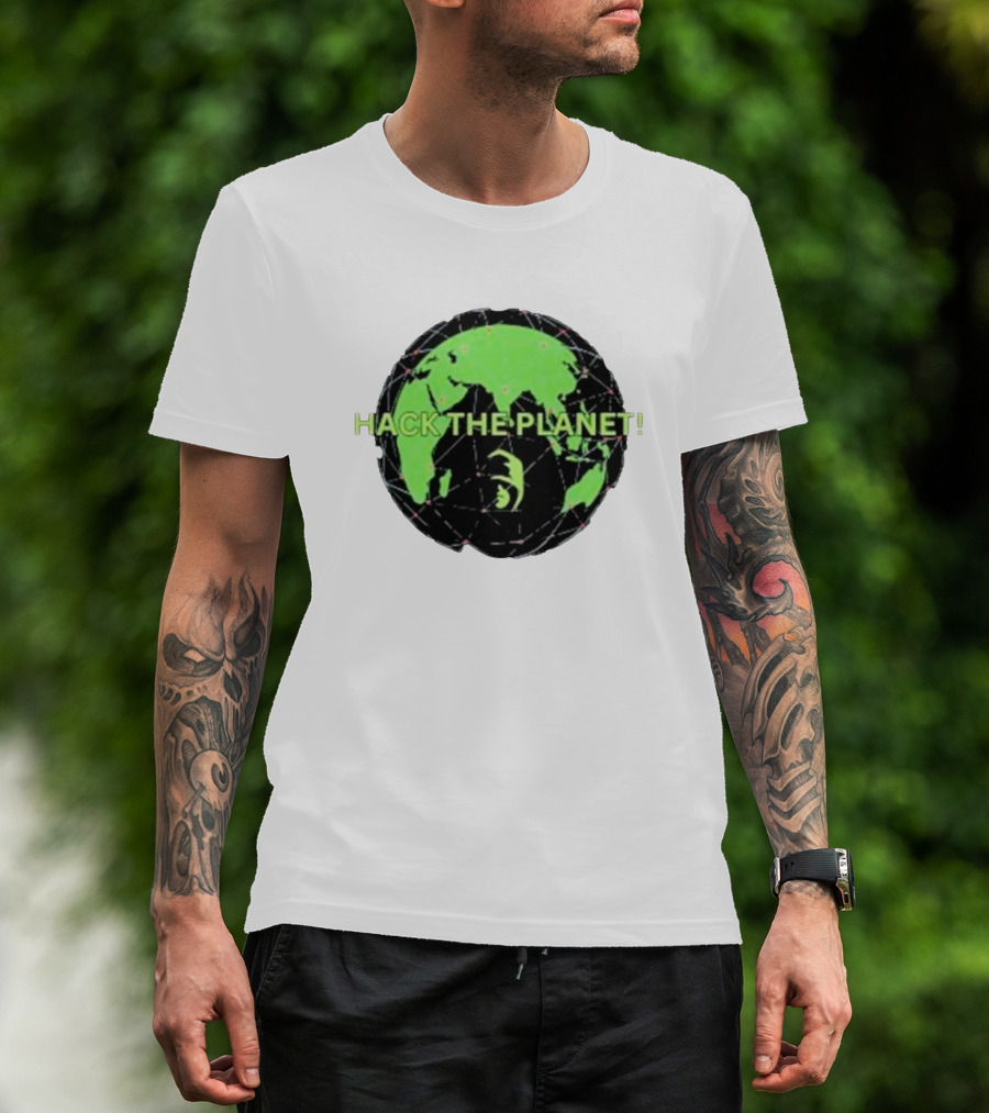 Hack The Planet Green And Black Globe Motif T-Shirt