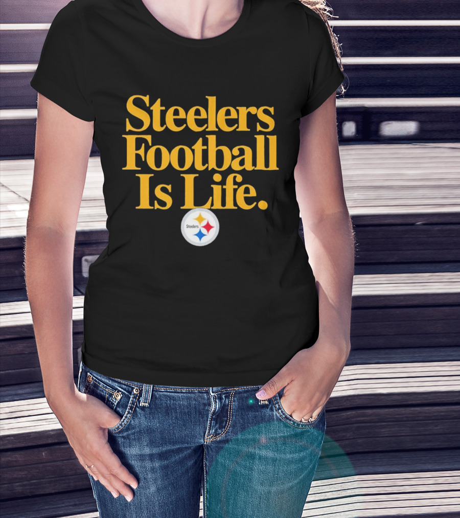 The Steelers Football Is Life T-shirt is designed for everyday wear and a consistent fit. Fabric is pre-shrunk ring-spun cotton with durable stitching. See the size chart below for exact measurements.