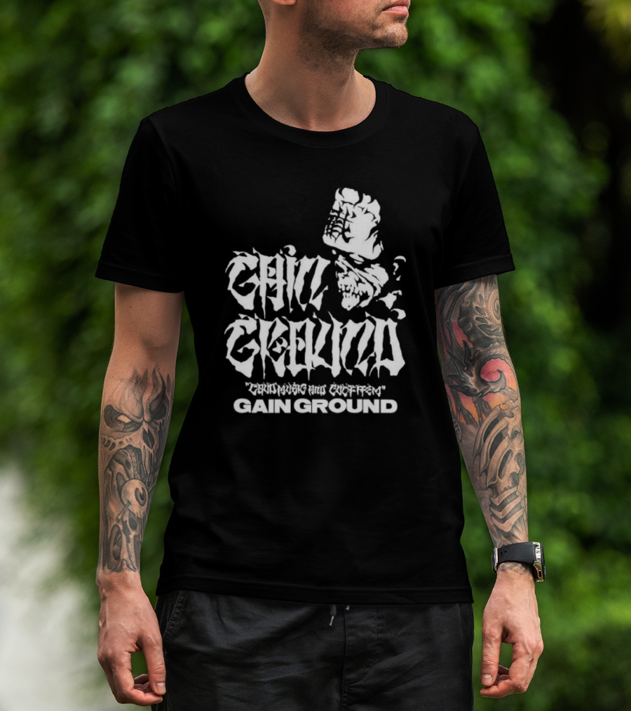 Gain Ground Grinning And Coffin Logo With Skull And Fist T-Shirt