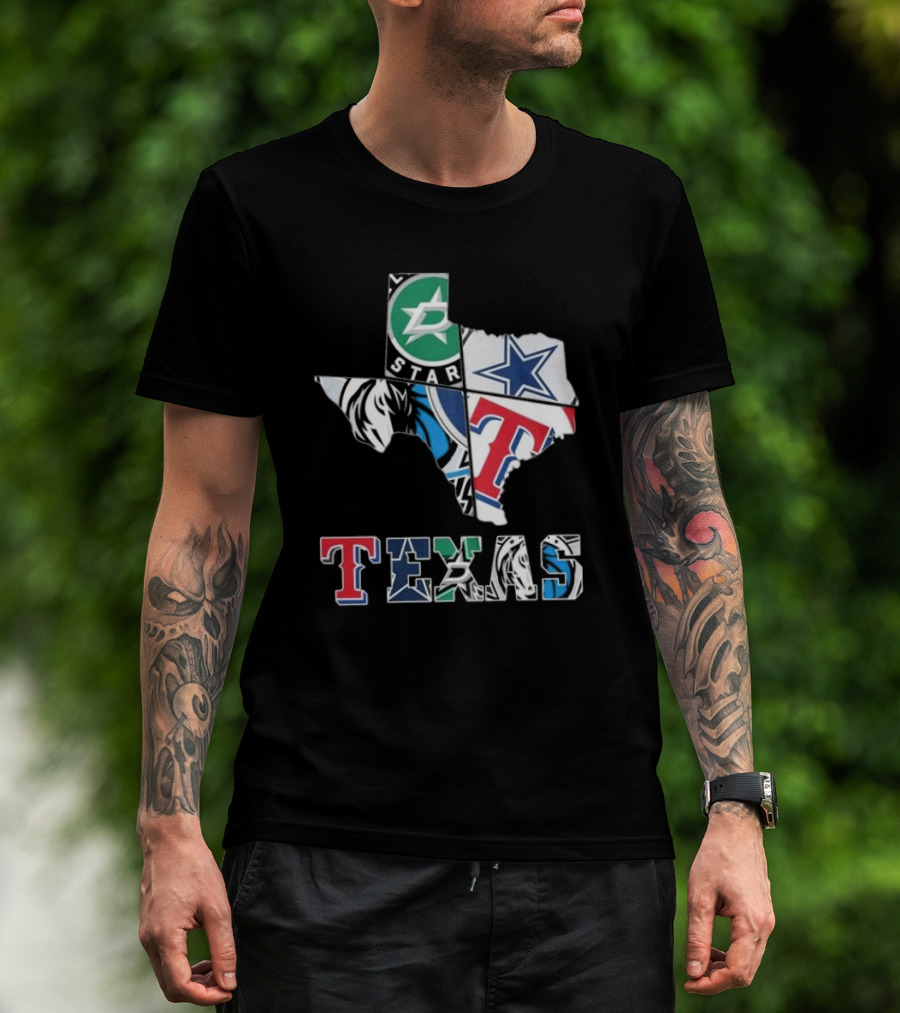 Texas Sports Teams Dallas Stars Dallas Cowboys Dallas Mavericks Texas Rangers Logos T-Shirt