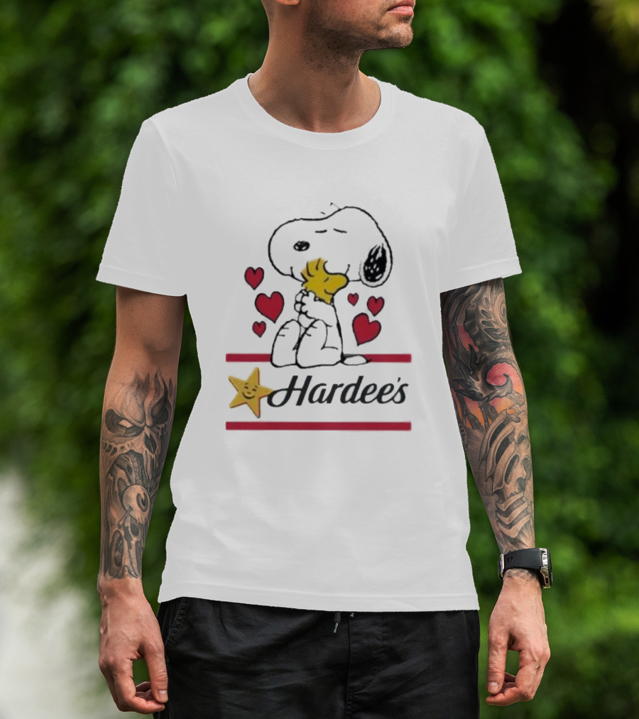 Snoopy And Woodstock Loving Hardee's With Hearts And Star T-Shirt
