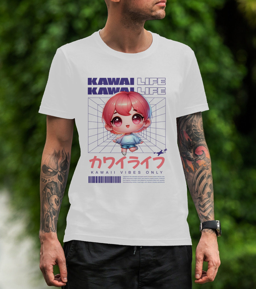 The Kawaii Life Kawaii Vibes Only T-shirt is designed for everyday wear and a consistent fit. Fabric is pre-shrunk ring-spun cotton with durable stitching. See the size chart below for exact measurements.