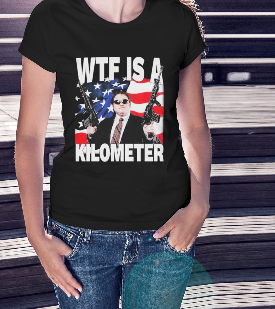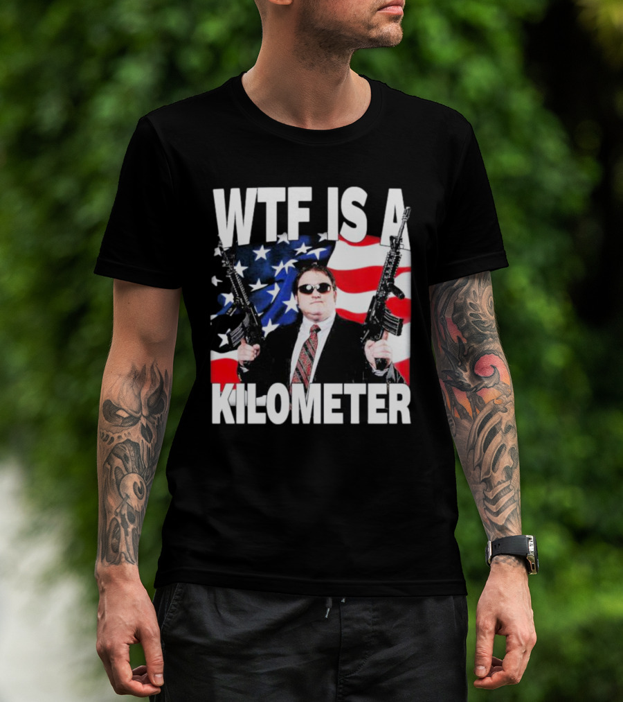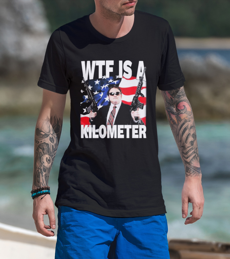 WTF Is A Kilometer American Flag Guns Suit Sunglasses T-Shirt