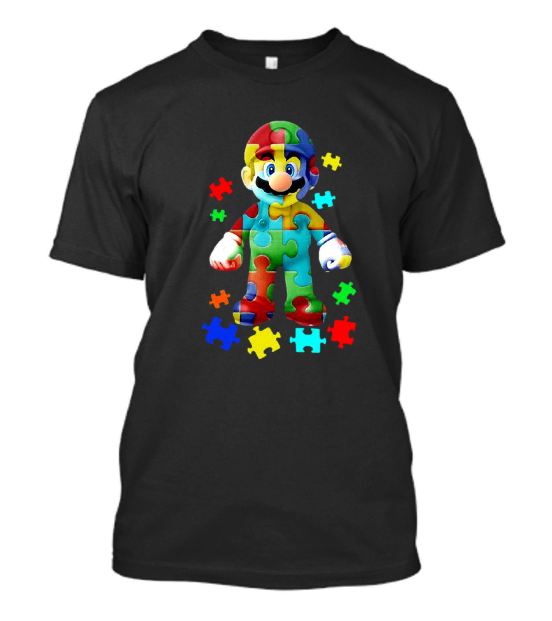 The Super Mario Puzzle Autism Awareness T-shirt is designed for everyday wear and a consistent fit. Fabric is pre-shrunk ring-spun cotton with durable stitching. See the size chart below for exact measurements.