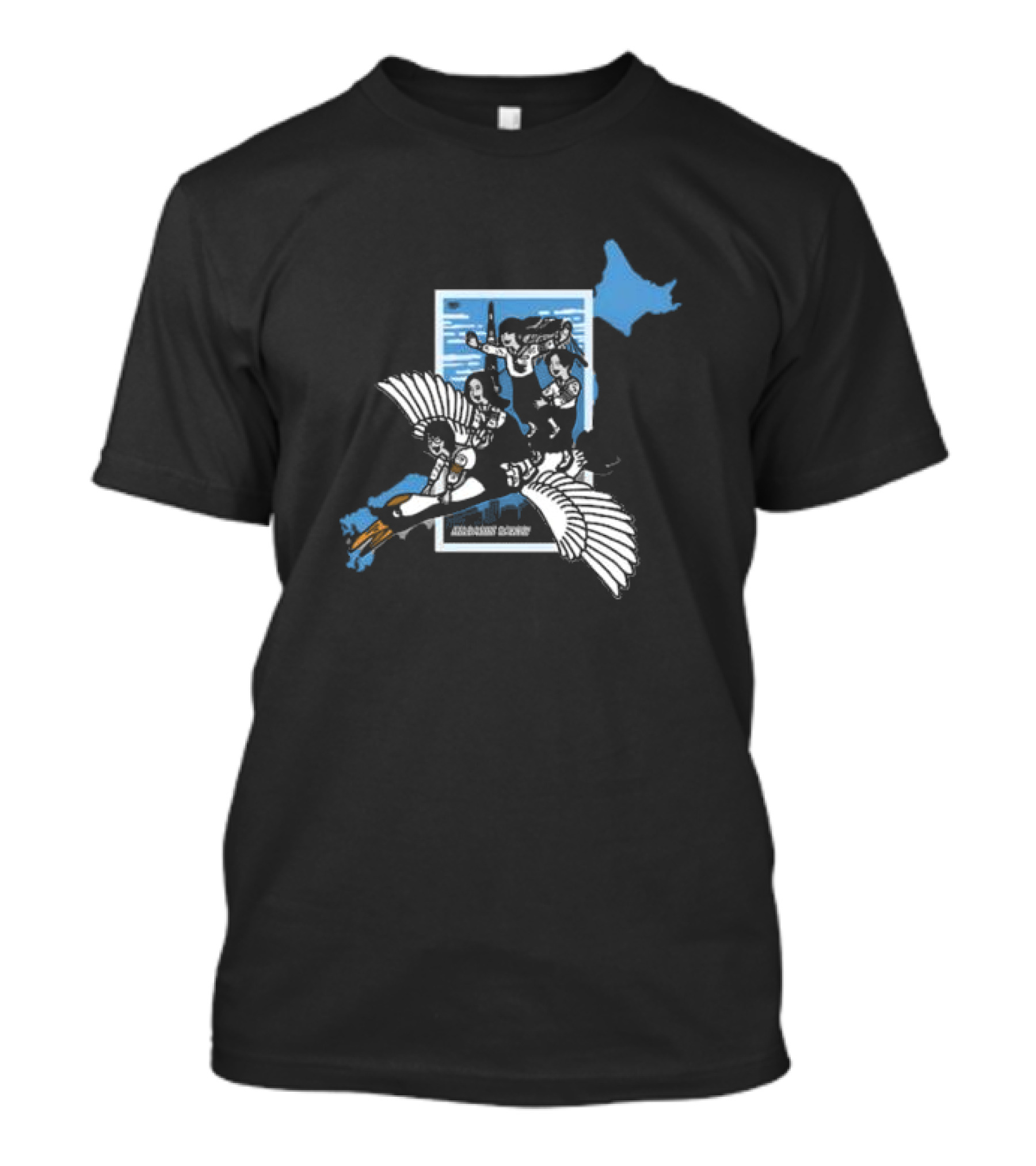 Atarashii Gakko Flying Group On White Cranes Navy Map T-Shirt