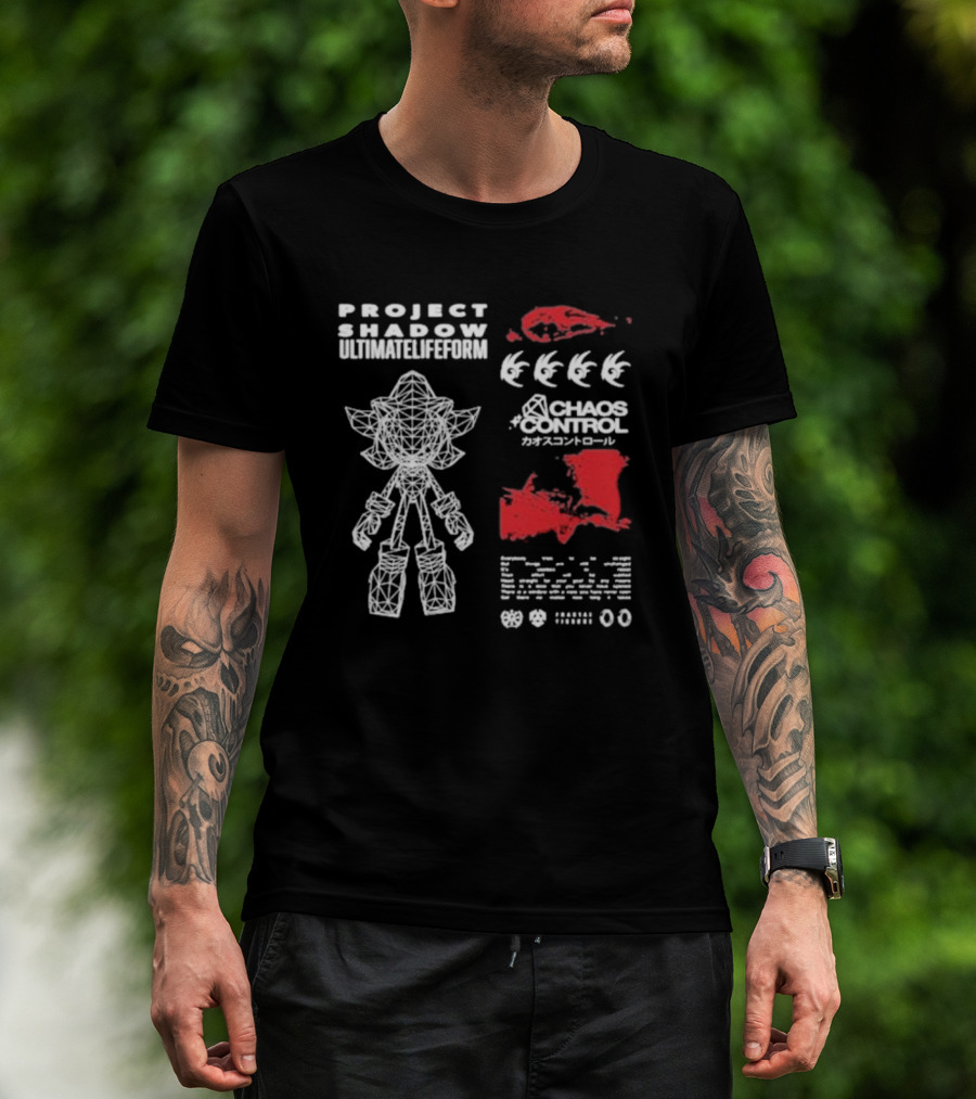 Project Shadow Ultimate Lifeform Chaos Control Japanese Text Wireframe Character Red Elements T-Shirt