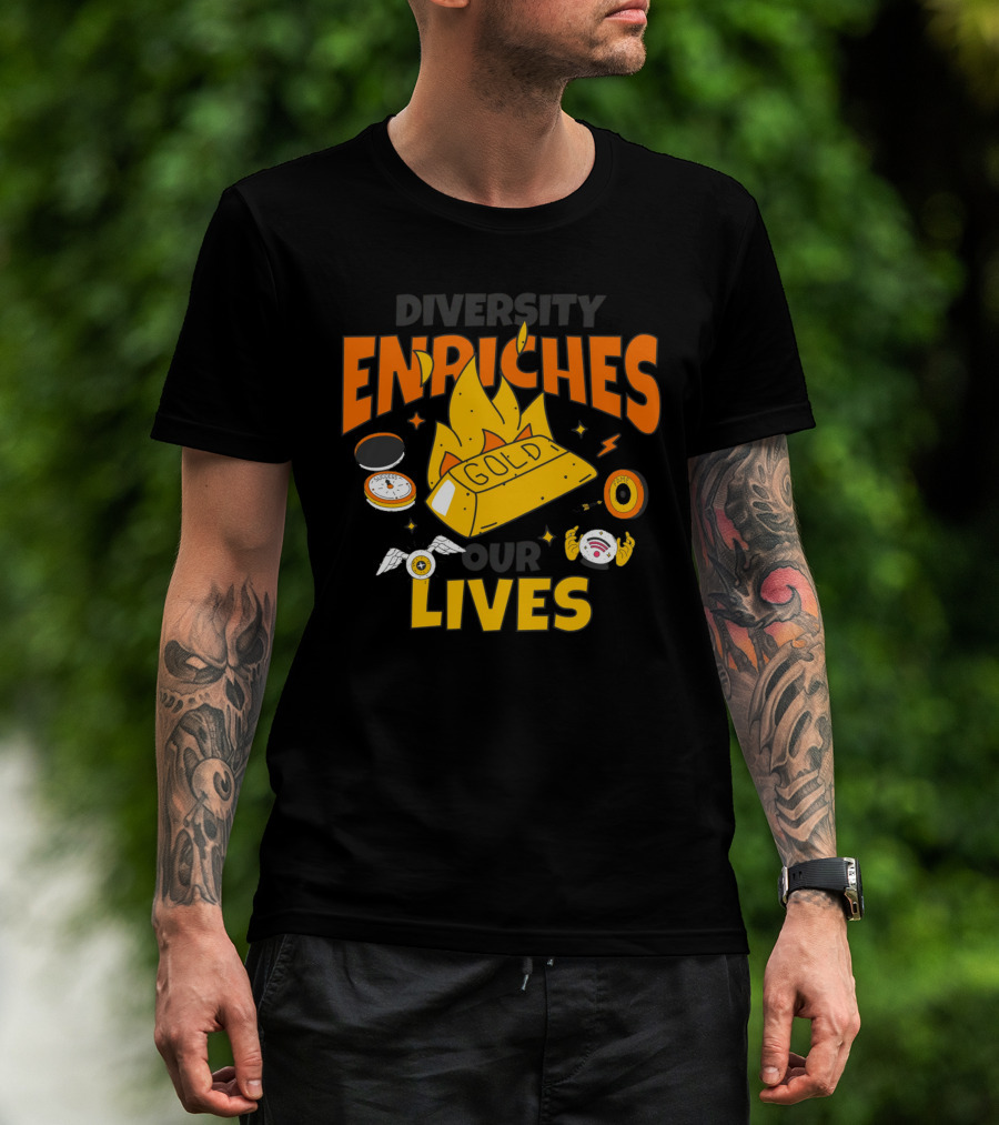 Diversity Enriches Our Lives Gold Flames Wings Compass T-Shirt