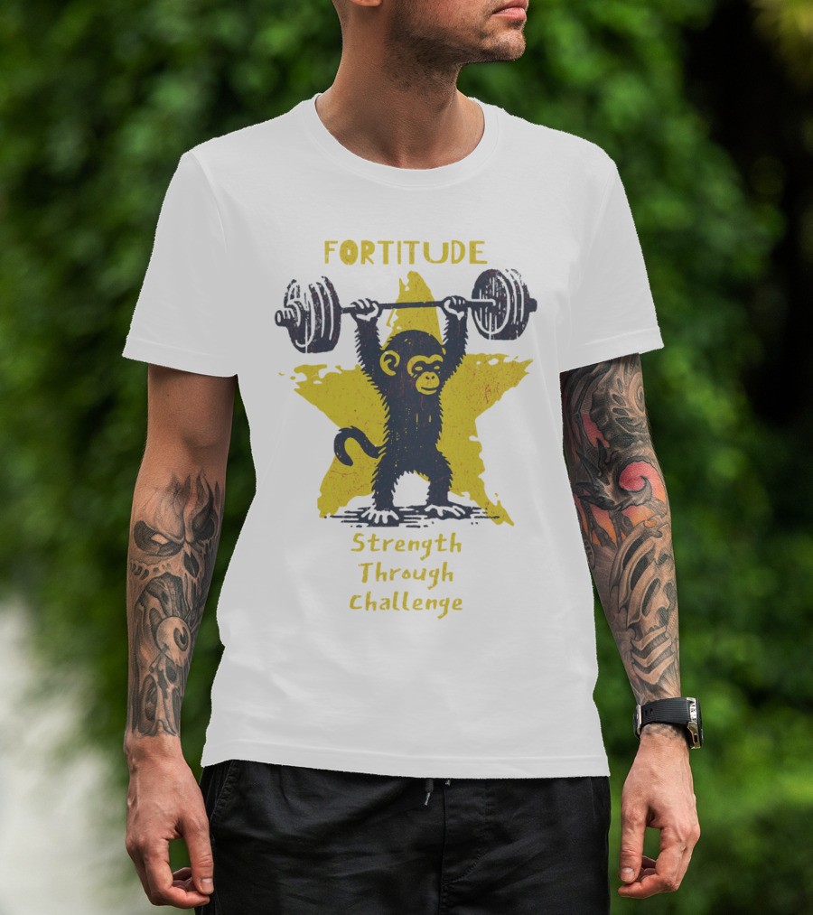 Fortitude Strength Through Challenge Monkey Weightlifting Star T-Shirt