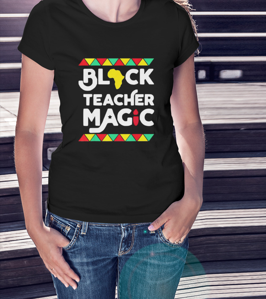 The Black History Month Black Teacher Magic African T-shirt is designed for everyday wear and a consistent fit. Fabric is pre-shrunk ring-spun cotton with durable stitching. See the size chart below for exact measurements.
