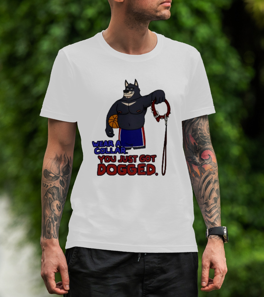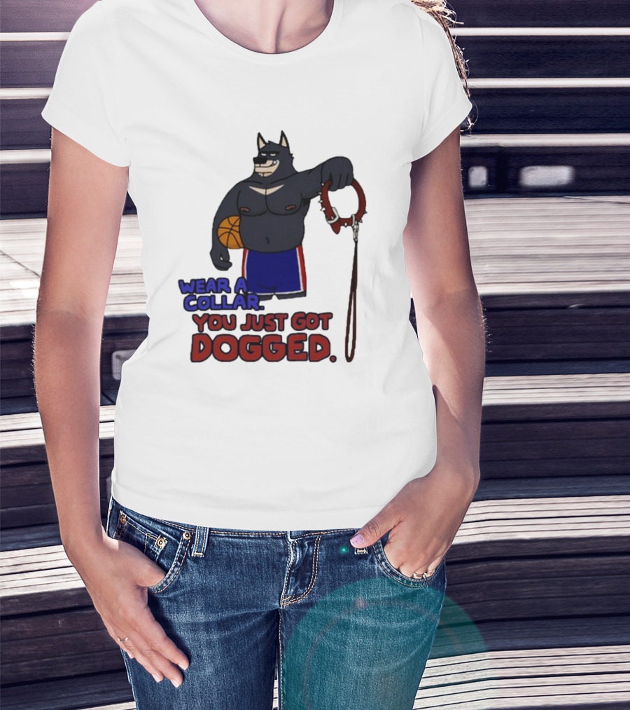 Wear A Collar You Just Got Dogged Basketball Wolf With Leash T-Shirt