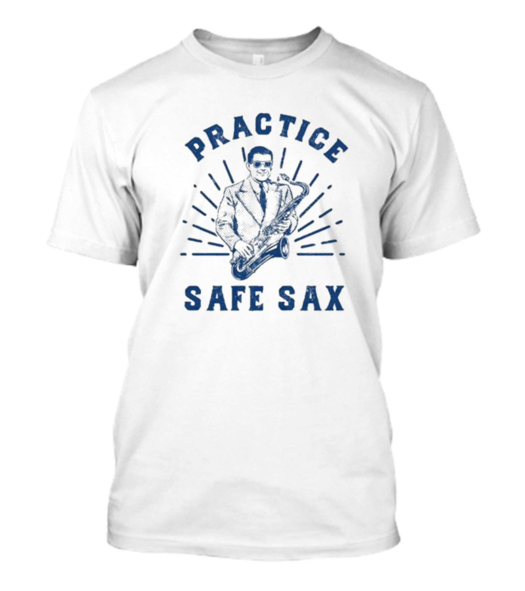 The Practice Safe Sax Sarcastic Saxophone Joke T-shirt is designed for everyday wear and a consistent fit. Fabric is pre-shrunk ring-spun cotton with durable stitching. See the size chart below for exact measurements.