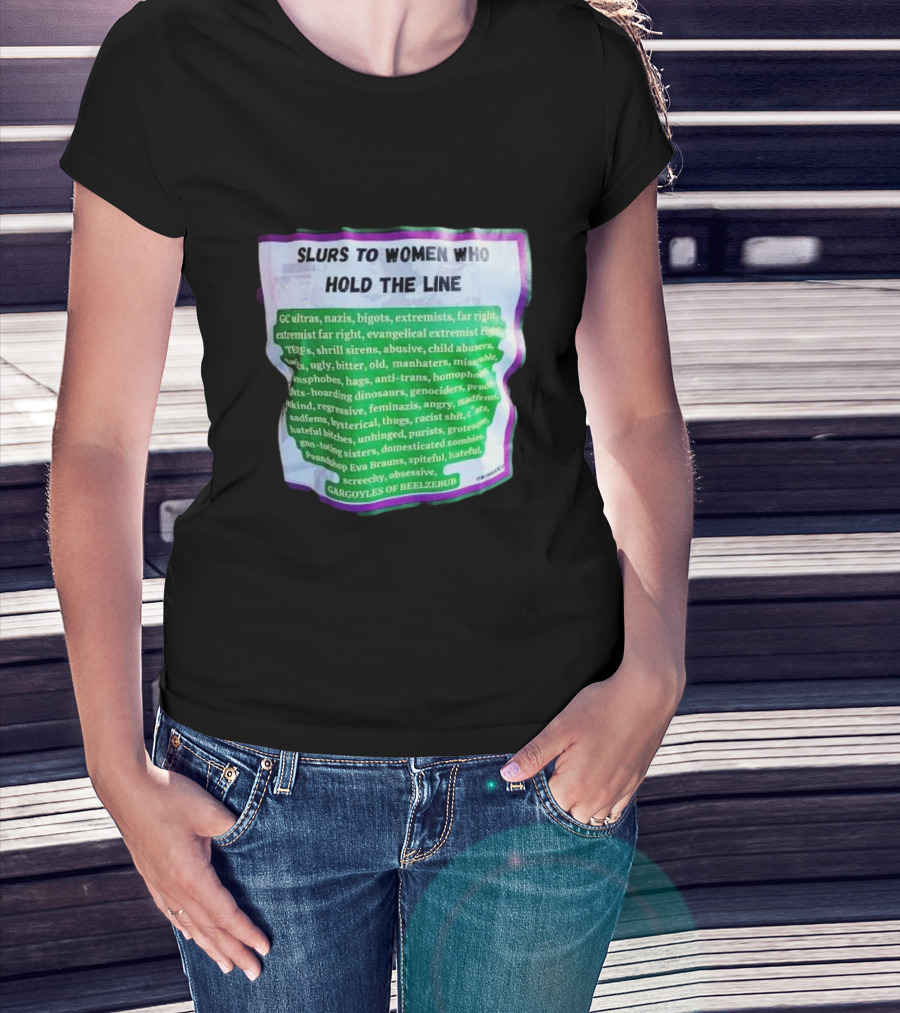 Slurs To Women Who Hold The Line GC Ultras Nazis Bigots Extremists Far Right Evangelical TERFs Gargoyles Of Beelzebub T-Shirt