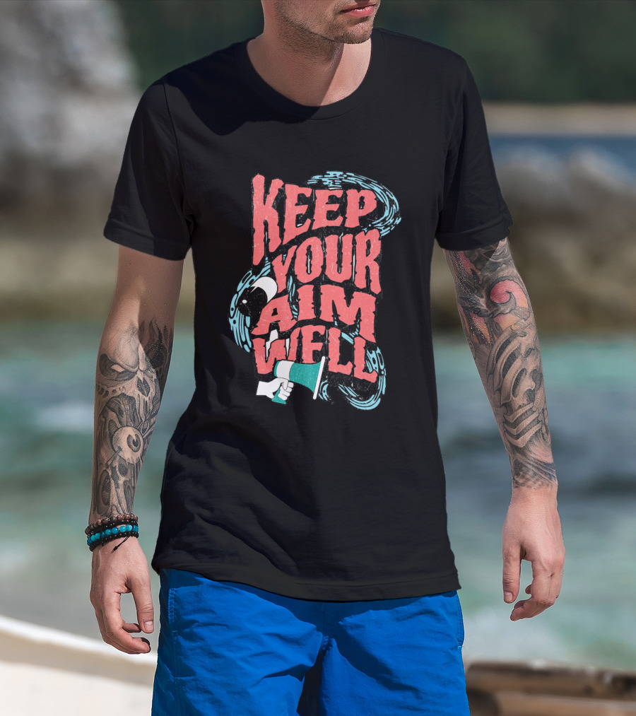 Keep Your Aim Well Vintage Megaphone Swirl Vibrant Typography T-Shirt