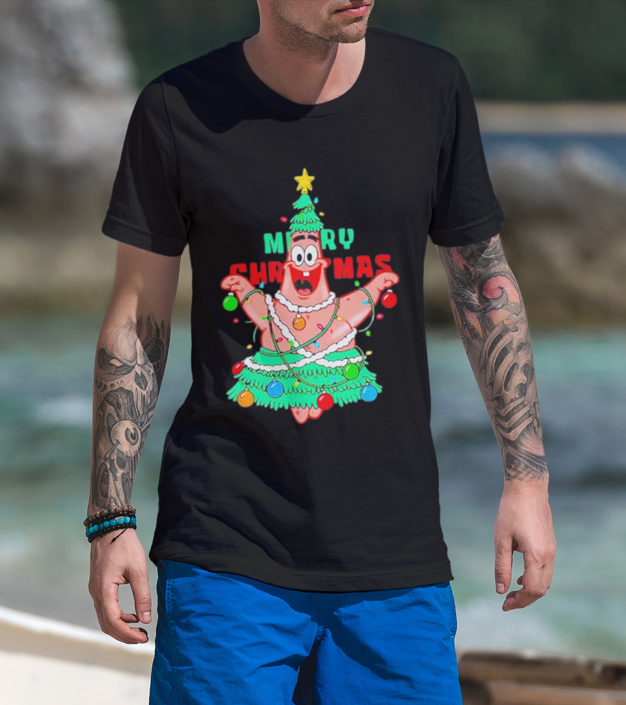 The Patrick Star Merry Christmas Tree T-shirt is designed for everyday wear and a consistent fit. Fabric is pre-shrunk ring-spun cotton with durable stitching. See the size chart below for exact measurements.