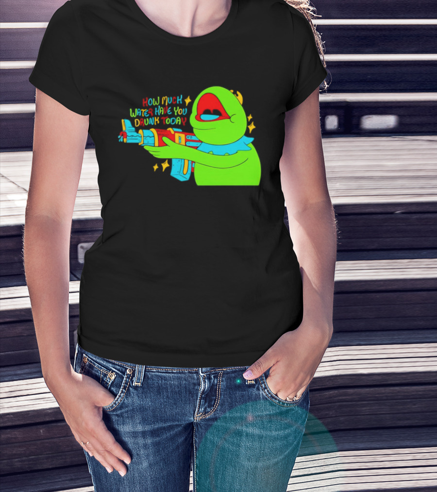Kermit How Much Water Have You Drunk Today Gun Drawing T-Shirt