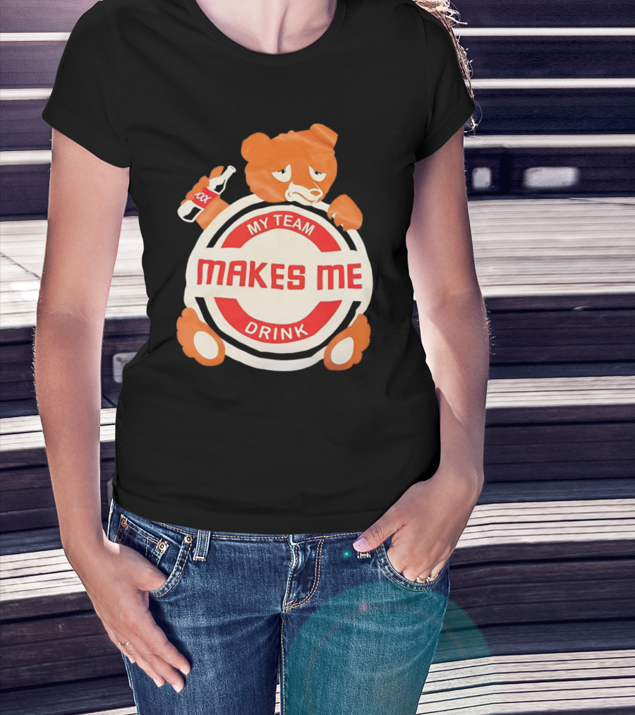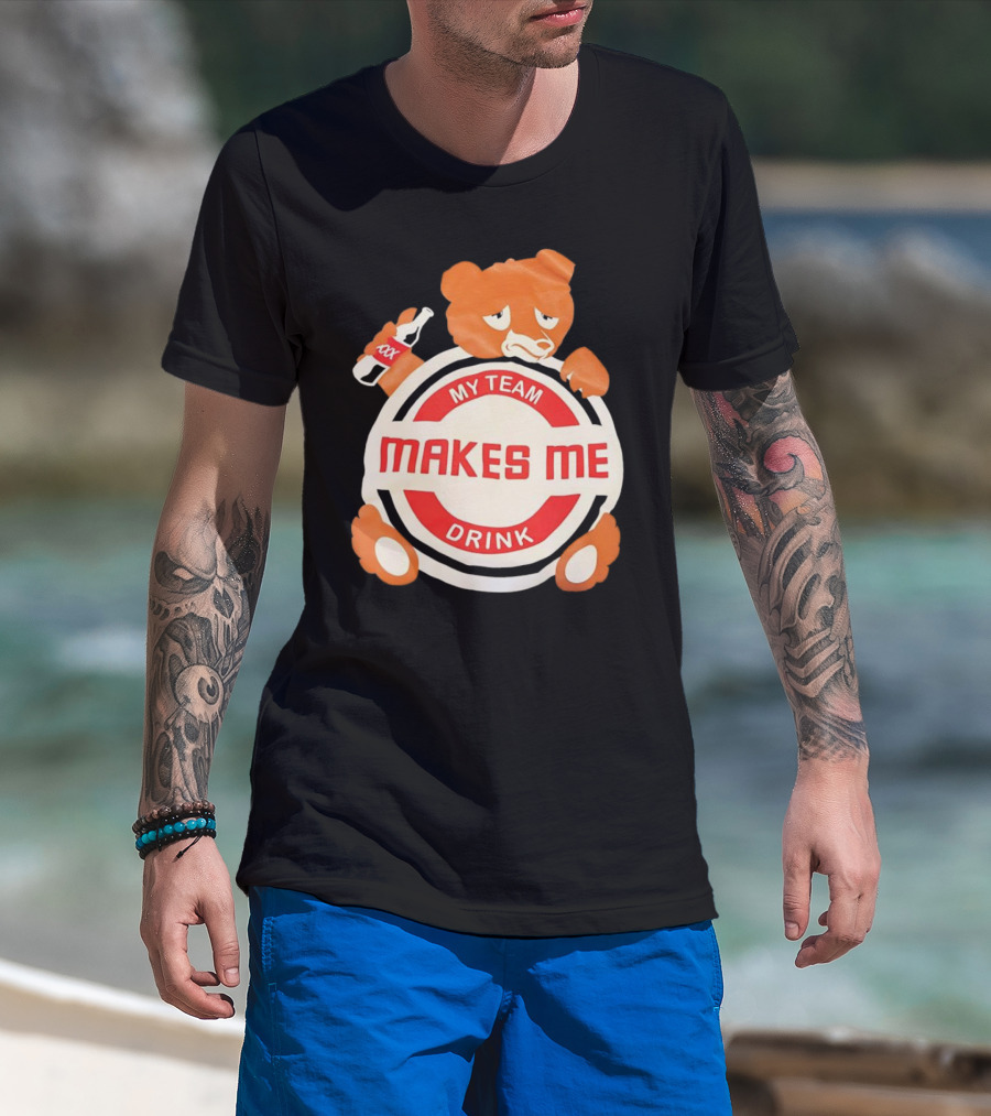My Team Makes Me Drink Bear With Sad Bear Holding Bottle T-Shirt