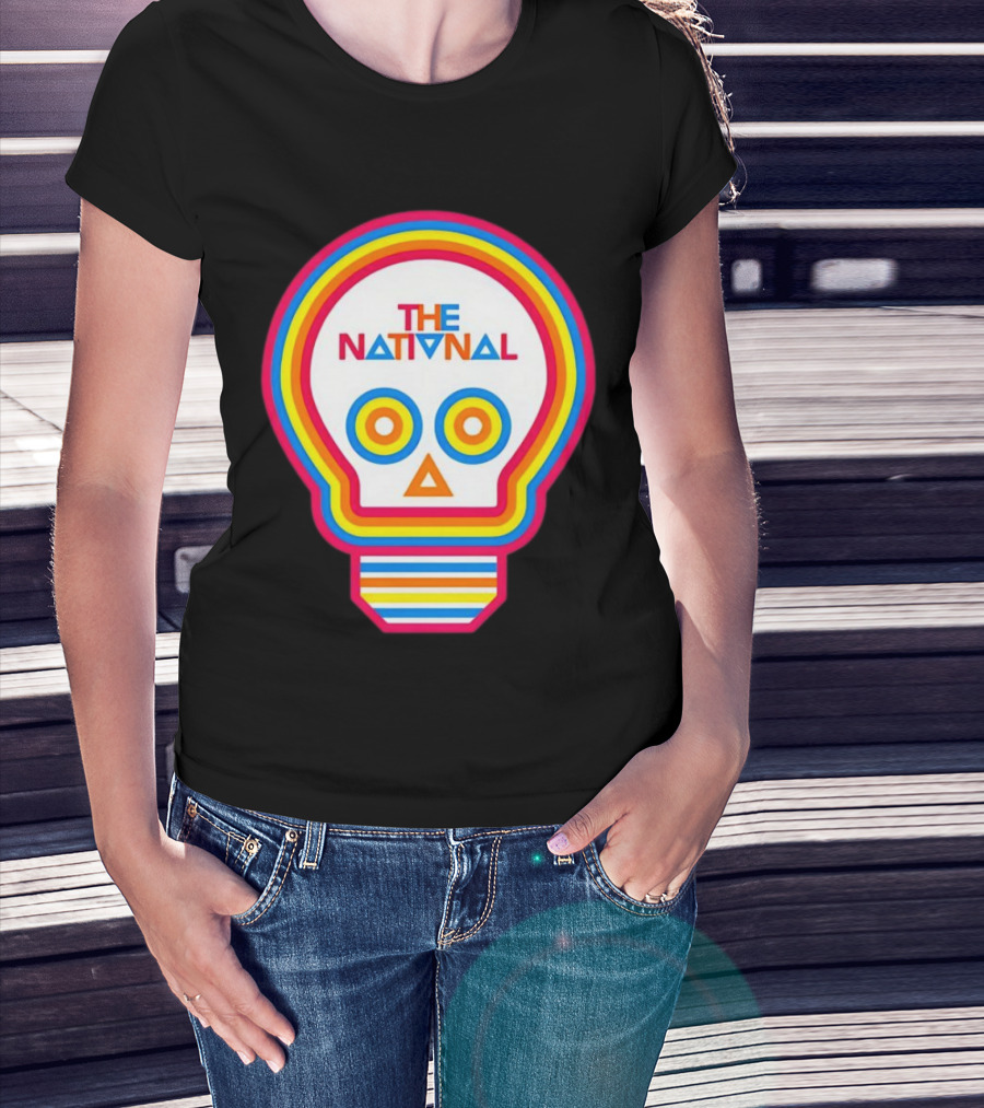 The The National Lightbulb Skull Retro Rainbow T-shirt is designed for everyday wear and a consistent fit. Fabric is pre-shrunk ring-spun cotton with durable stitching. See the size chart below for exact measurements.