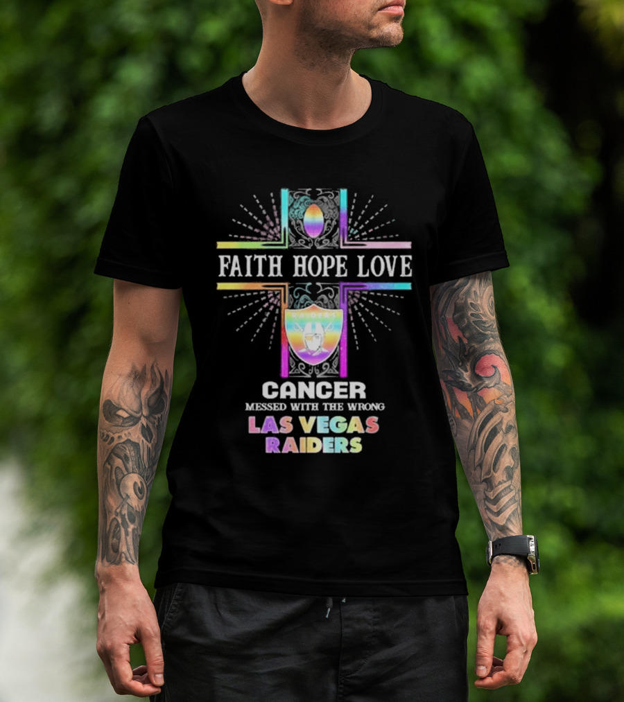 Faith Hope Love Cancer Messed With The Wrong Las Vegas Raiders T-Shirt