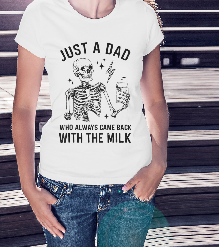 Skeleton Just A Dad Who Always Came Back With The Milk Lightning And Stars T-Shirt