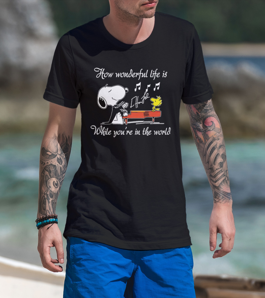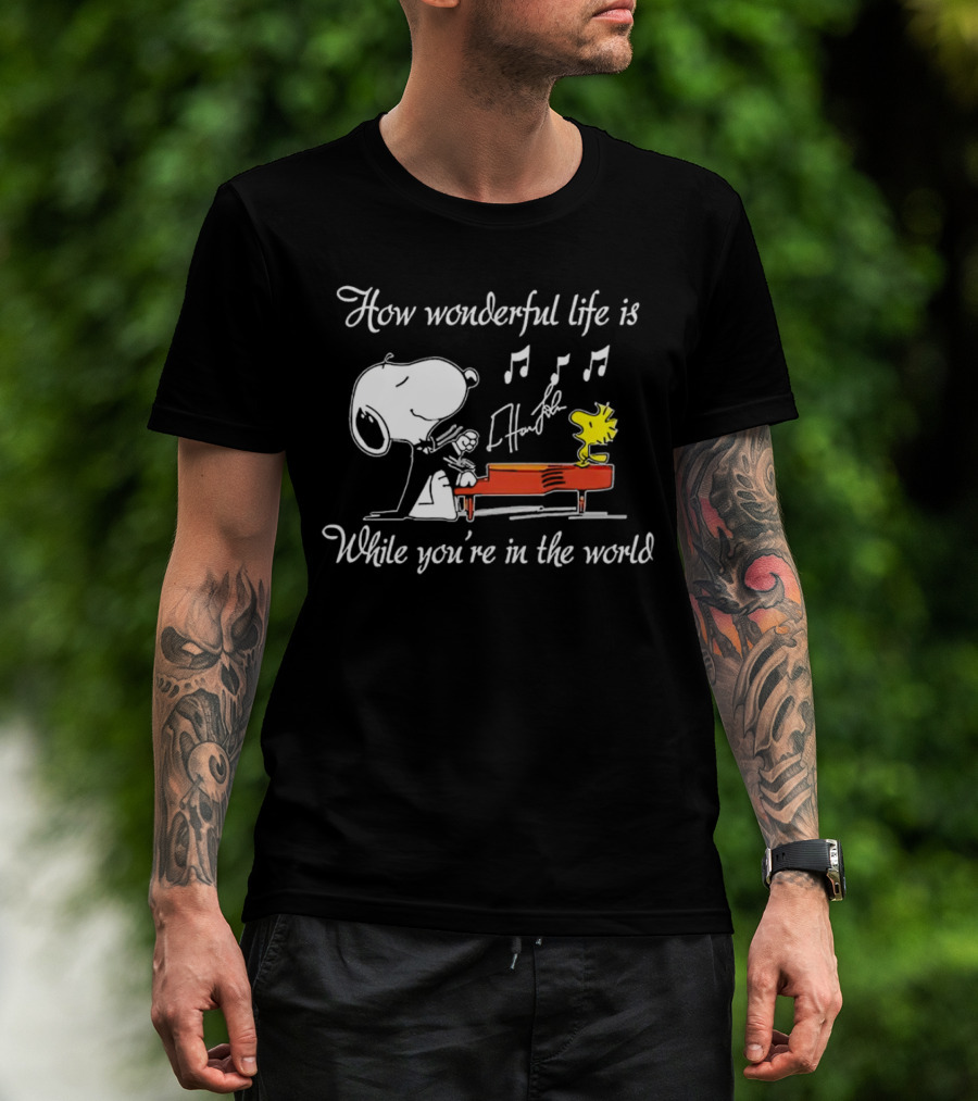 How Wonderful Life Is Snoopy And Woodstock Playing Piano T-Shirt