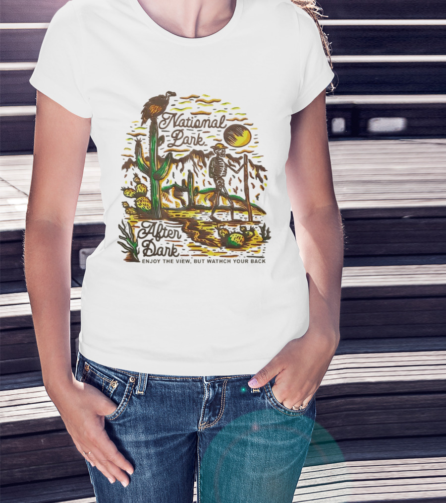 National Park After Dark Enjoy The View But Watch Your Back Desert Skeleton T-Shirt