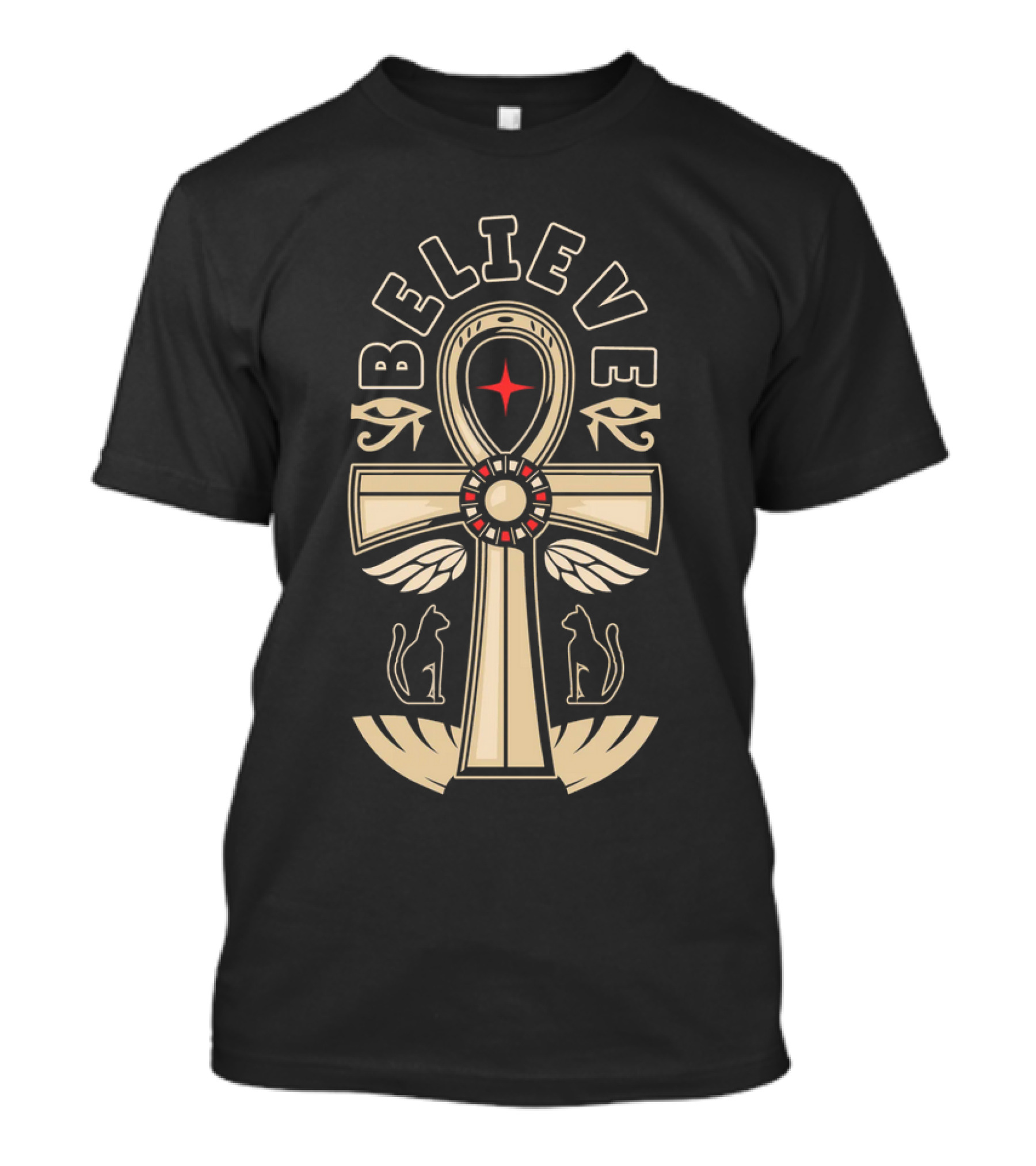 Believe Ankh Symbol With Wings And Cats T-Shirt