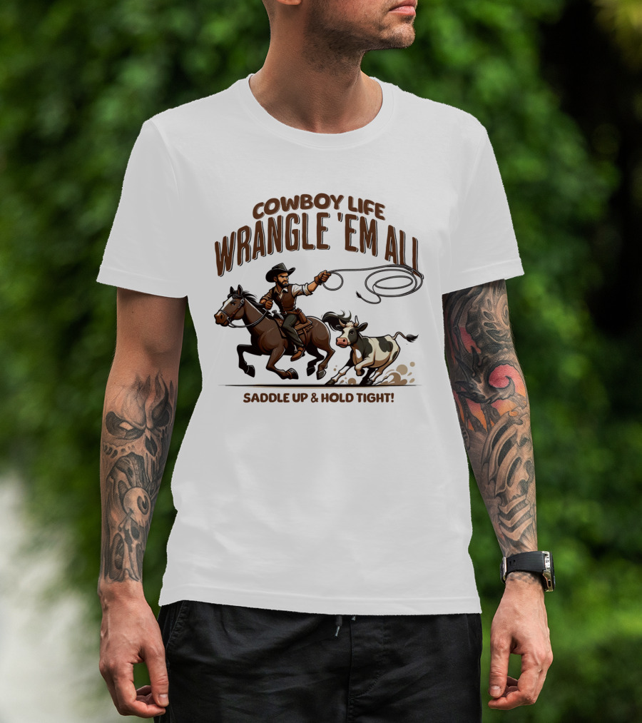 Cowboy Life Wrangle 'Em All Saddle Up And Hold Tight T-Shirt